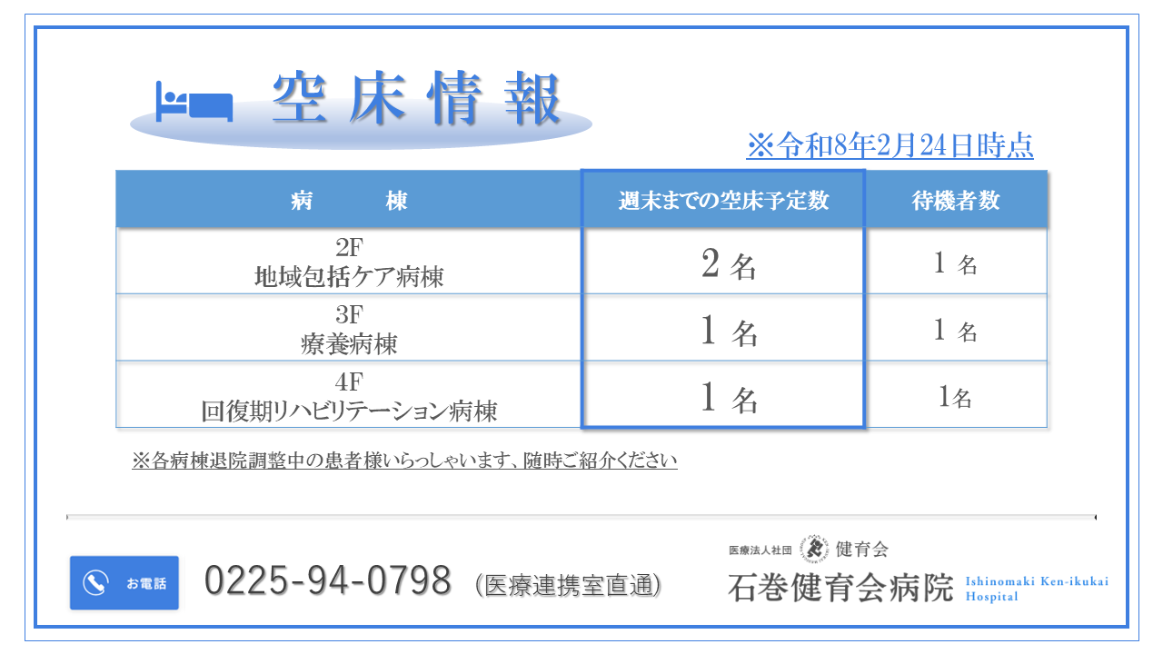記載の日付時点での空床情報になります